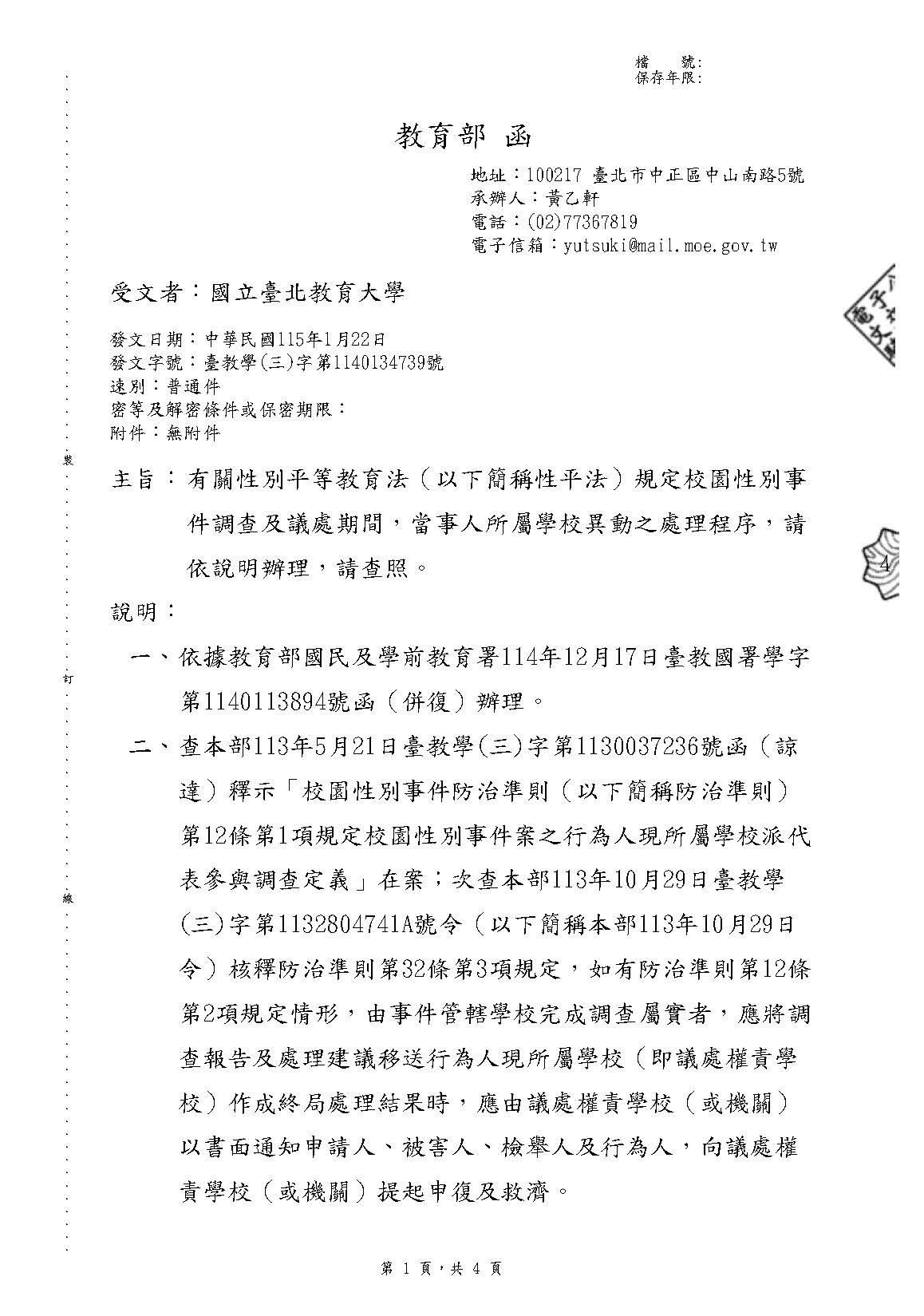 115.1.22函釋-校園性別事件調查及議處期間,當事人所屬學校異動之處理程序.pdf